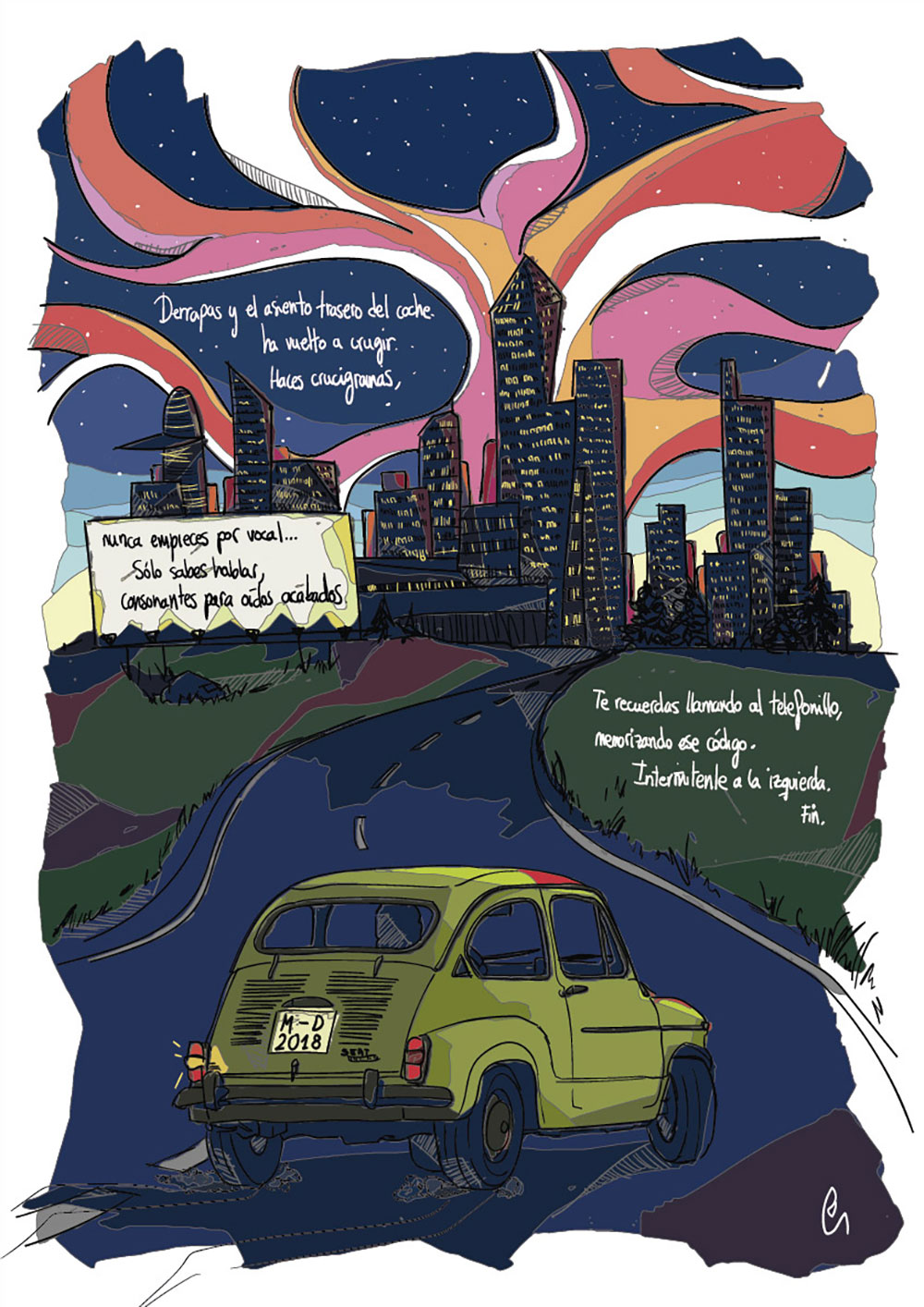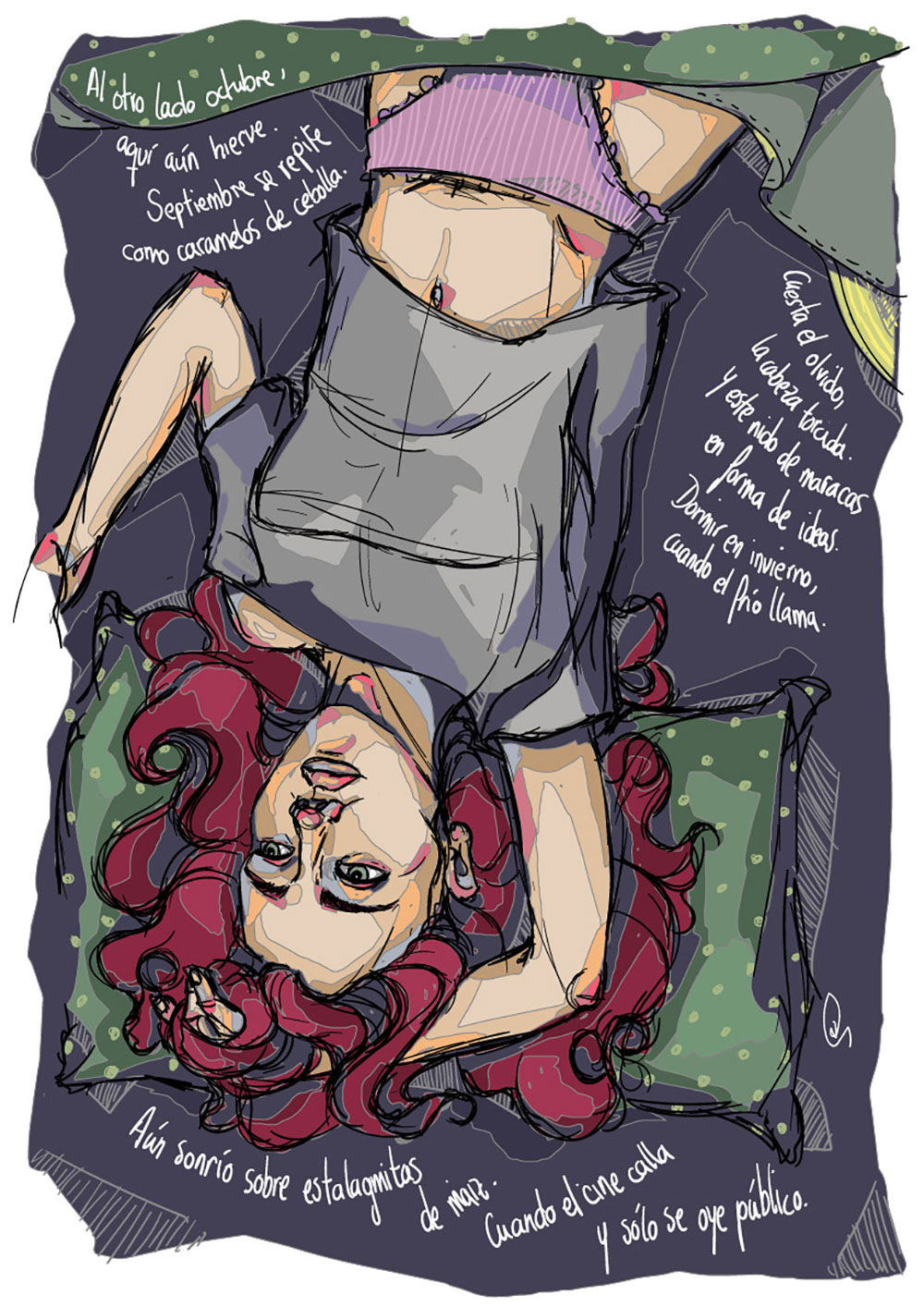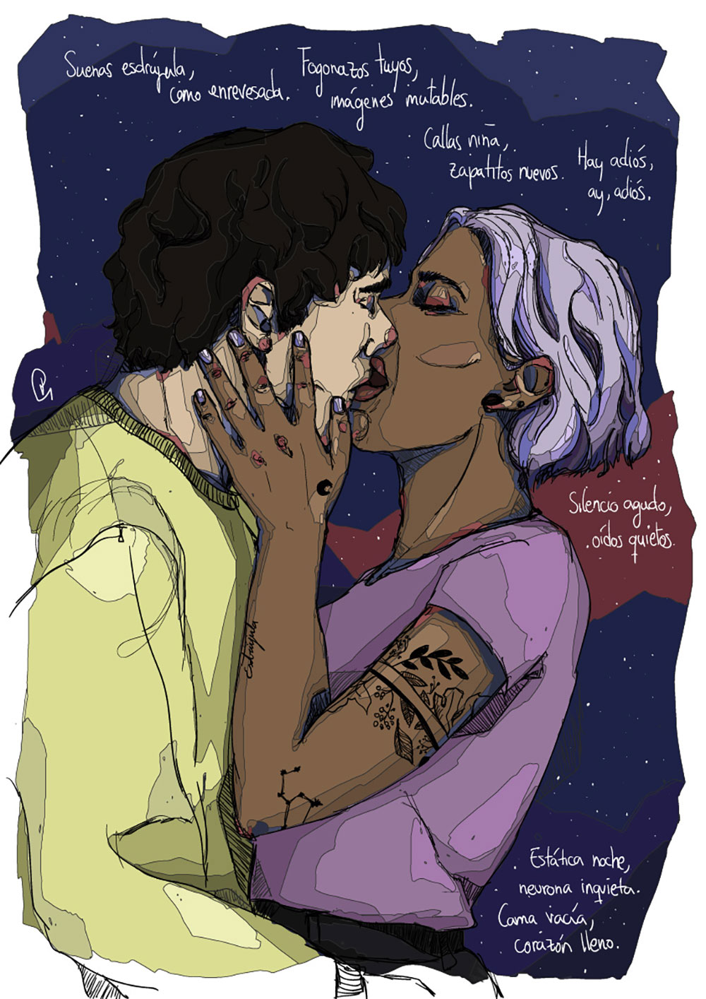 Ilustraciones digitales realizadas a partir de los poemas de Manu Pérez. La obra se contempló como una serie de ilustraciones que se expusieron impresas en DINA2. La exposición tuvo lugar entre el 4 de Julio al 15 de septiembre de 2020 en Vian [tu bareto].
